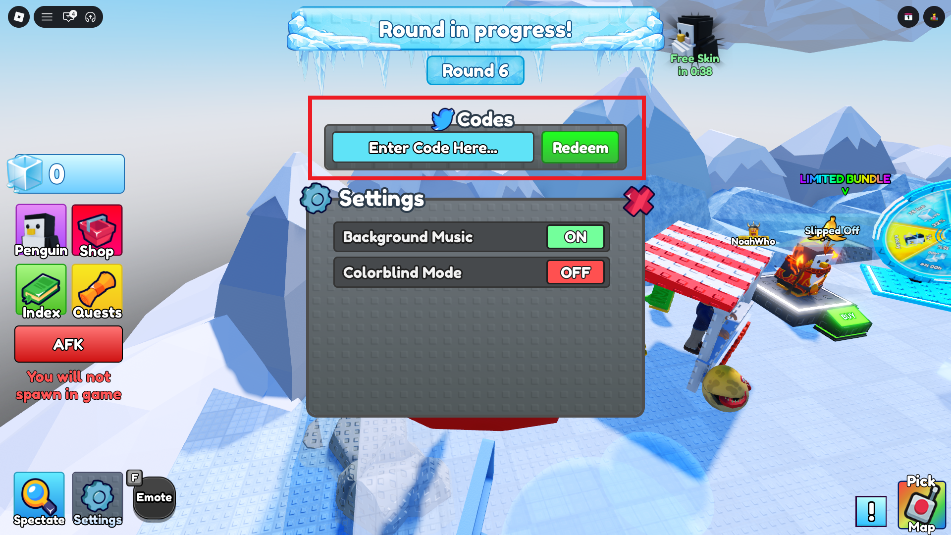 Knockout codes are free promotional keywords provided by the developers (Braxworks) to reward players. These codes typically grant free Ice, which is used to purchase eggs and unlock new penguin cosmetics, or Spins for the lucky wheel. They are frequently released alongside major game updates, community milestones, or seasonal events like Valentine's Day.